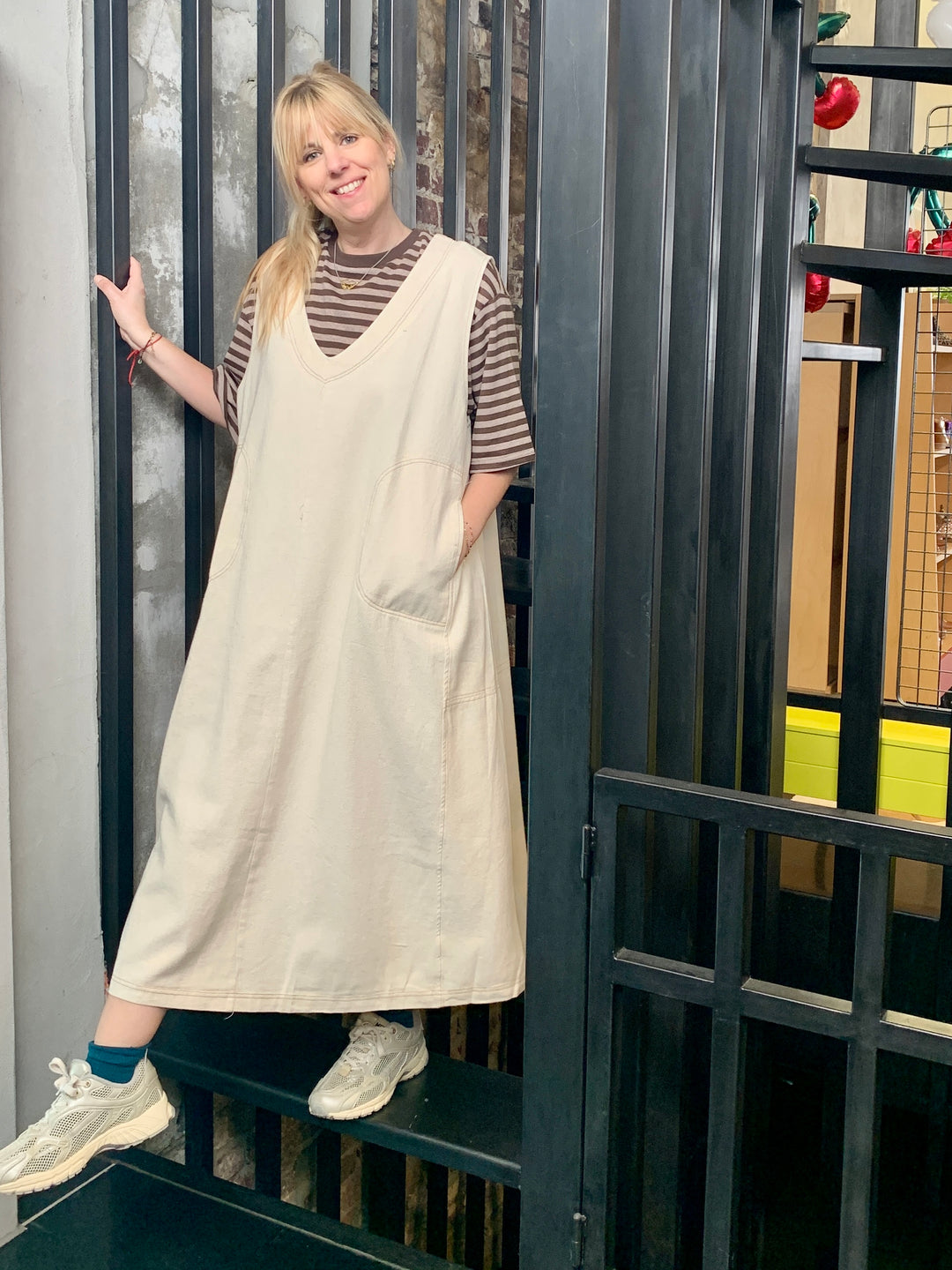Jumpsuit brijs met streep